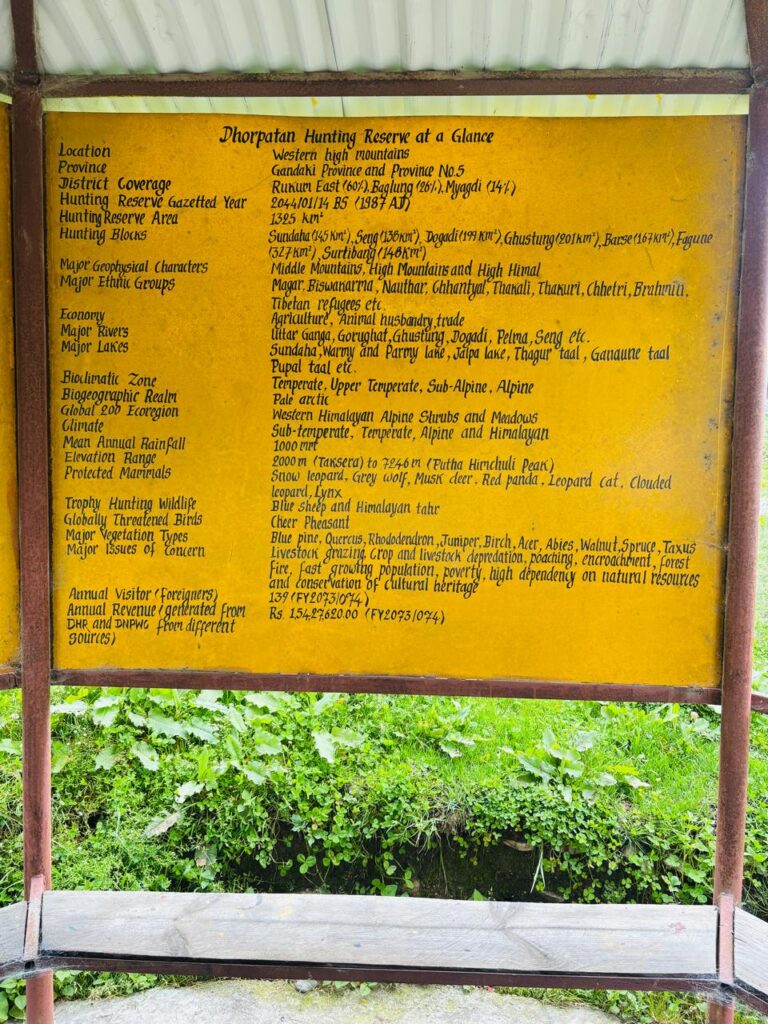 यस क्षेत्रमा वन संरचना उपोष्ण (३,००० मि) ओक, इनार, फर्न, हुर्मुस, तथा उप–अल्पाइन (३,०००–४,०००  मि) पाइन, फिर्क, जुँपिर, रोधेन्ड्रनका साथै अल्पाइन (श्र ४,५००  मि)ः घाँसे मैदान (पाटन), उच्च हिमाली घास–बिरुवा ठूलो उत्सर्धन ब्याप्तिः ५८ संवेदनशिल प्रजाति र ३६ स्थानीय प्रजातिका फूलहरू पनि छन् । राजस्व र पुनरावेदनका अनुसार वार्षिक २५–३० ल्याइसेन्स वितरण गर्ने र (२० निलो भेडा, १० थाहार), राजस्व संकलन लगभग नेपाली रुपयाँ १०–१५ मिलियन, स्थानीय पुँजीको ३०+ रोजगार सृजना, समुदाय विकासमा पुन विनियोजन गरिएको छ ।